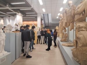 Η κα Ματένια Γκεϊβανίδου, Δρ., ΕΔΙΠ στο Τμήμα Ιστορίας και Αρχαιολογίας του ΑΠΘ, καλωσόρισε τους μαθητές/τριες και μαζί περιηγήθηκαν στους χώρους του μουσείου: παρατήρησαν τις λεπτομέρειες των αγαλμάτων, τη δυναμική της κίνησής τους, την έκφραση των συναισθημάτων και τη δεξιοτεχνία των καλλιτεχνών. Μέσα από την άμεση επαφή με τα εκμαγεία, οι μαθητές/τριες κατανόησαν πως η Τέχνη δεν είναι απλώς εικόνα ή πληροφορία, αλλά βιωματική εμπειρία, αποτέλεσμα ανθρώπινης έμπνευσης, δημιουργικότητας και βαθιάς σκέψης.